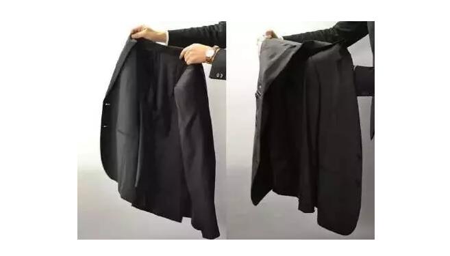 這樣的折疊方法,站著就能完成,不需要一個(gè)干凈的操作平面。將內(nèi)襯翻到外面來(lái),可以讓西裝夾克的表面避免磨損和意外刮傷。建議不要在折疊好的夾克上放很多東西,避免中間的折痕變明顯了。