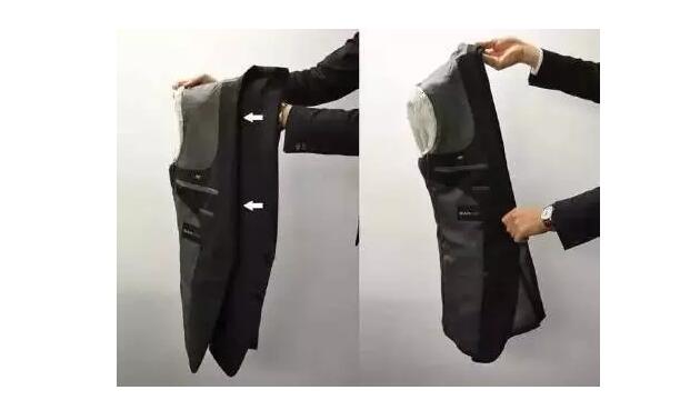 對(duì)于行色匆匆的人來(lái)說(shuō),這種折疊方法最快速簡(jiǎn)單了,就跟襯衫的折疊方法一樣。(比較適合沒(méi)有墊肩的薄西裝)